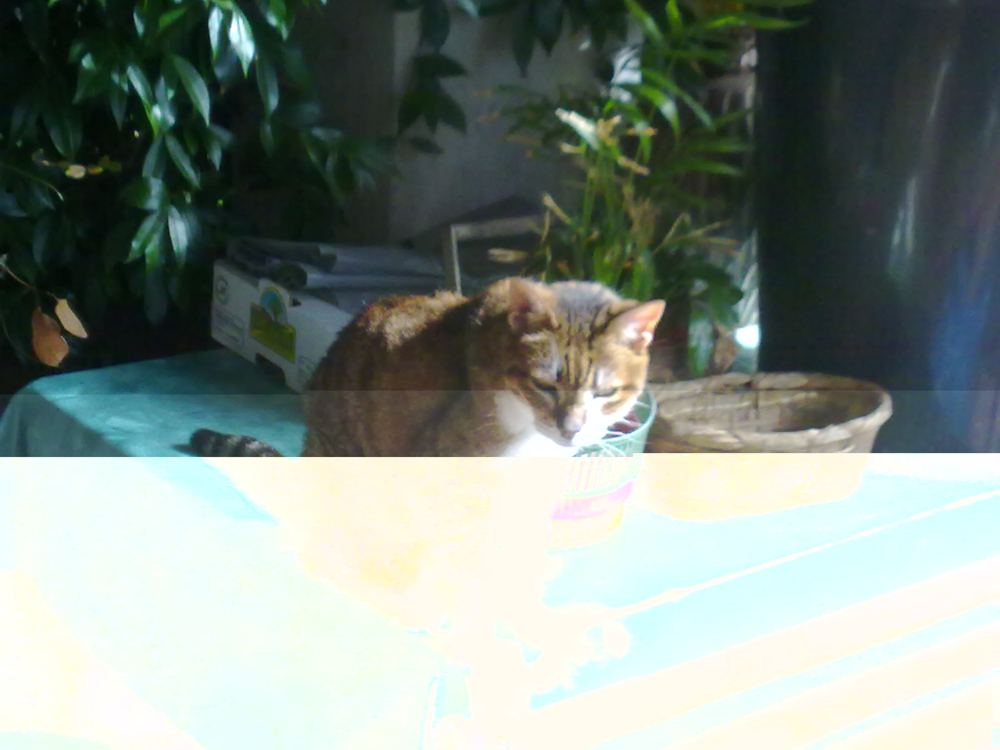 Salta ancora sul muretto e poi sul tavolo esterno....