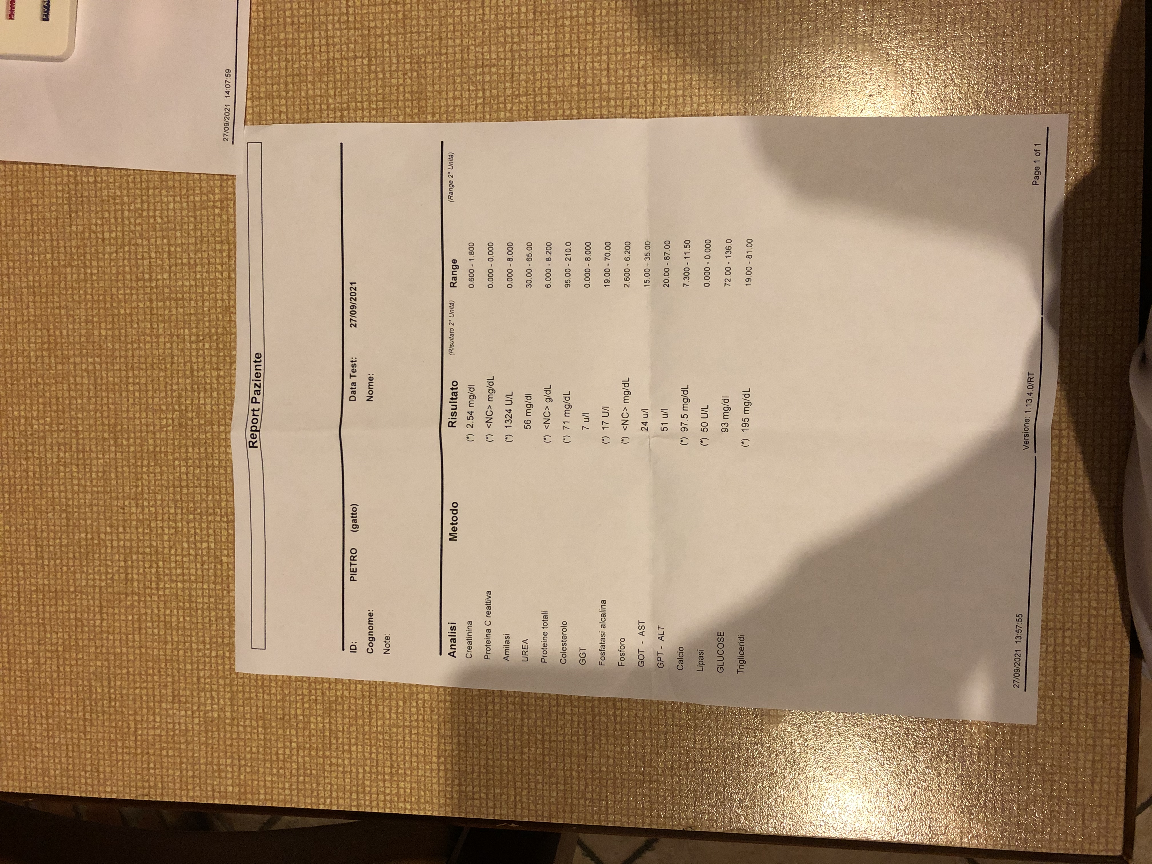 Ti scrivo qui perché avrei bisogno di un aiuto nel cercare di curare Piero, il mio micio che si è negativizzato dalla FeLV confermato tramite pcr. Oggi l’ho portato dal veterinario perché inappetente e facendo biochimico completo ed esame urine (visto che ha avuto due blocchi urinari) si è scoperto invece essere fortemente anemico e quindi il veterinario ipotizza leucemia non causata da virus (è stato ripetuto anche il test Elisa Fiv/FeLV).