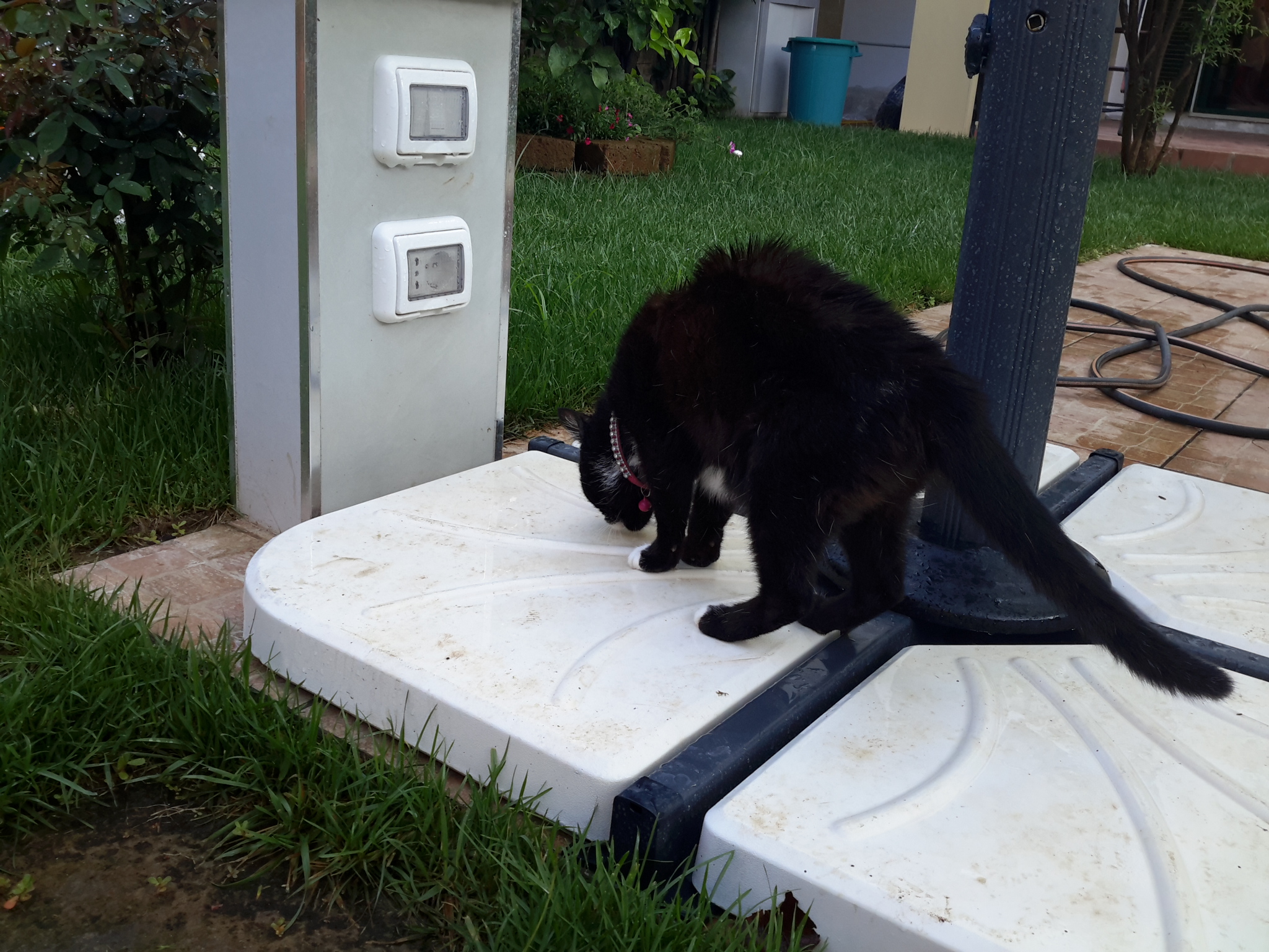 Oggi ha tirato fuori il suo istinto di ex-randagia! Servizio completo fra busta dell'immondizia e acqua stagnante e alla fine il riposo della guerriera baciata dal sole! :rilassato: