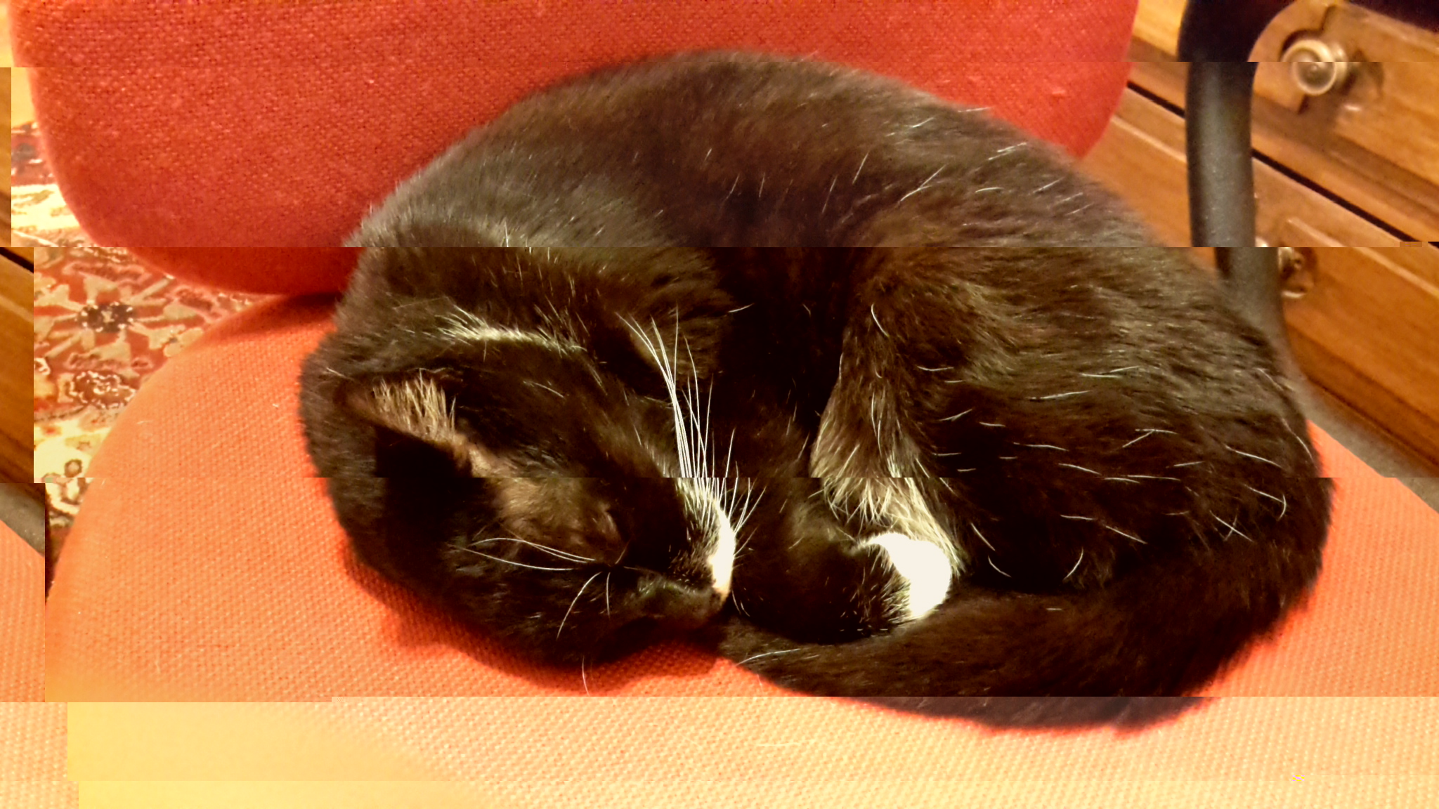 Fra due settimane torna in villa dai miei perché a casa arrivano i due cani matti (abituati ai gatti, peró) e non voglio destabilizzarla. A gennaio riempio la casa di Feliway e preparo l'ambiente al suo ritorno, dove troverà uno dei due cani che rimarrà a Bari: o Whisky, il cane nano ipernevrotico é scapolo; o Lucky, la canóna enorme vecchia anch'ella e ipomobile causa età avanzata età acciacchi vari.